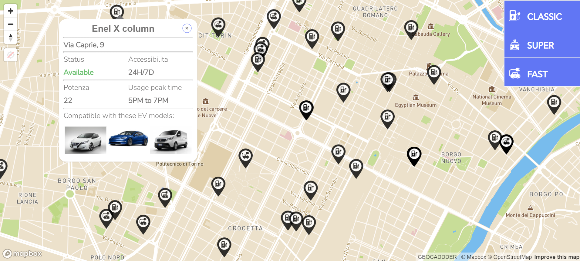 Интерактивна карта, показваща зарядни станции за електромобили. Картата е изработена за френската компания "Voltaage".